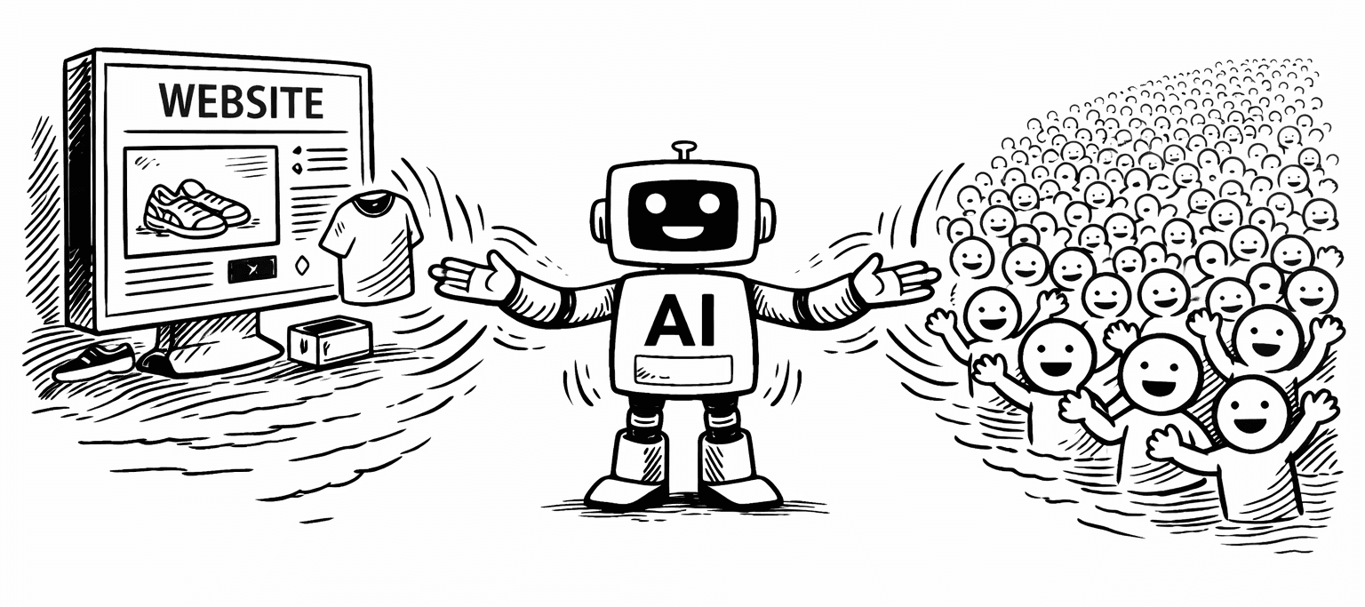 On one side you have your product and your website. On the other side you have millions of users on the platform. And right in between sits the AI system trying to connect the two.