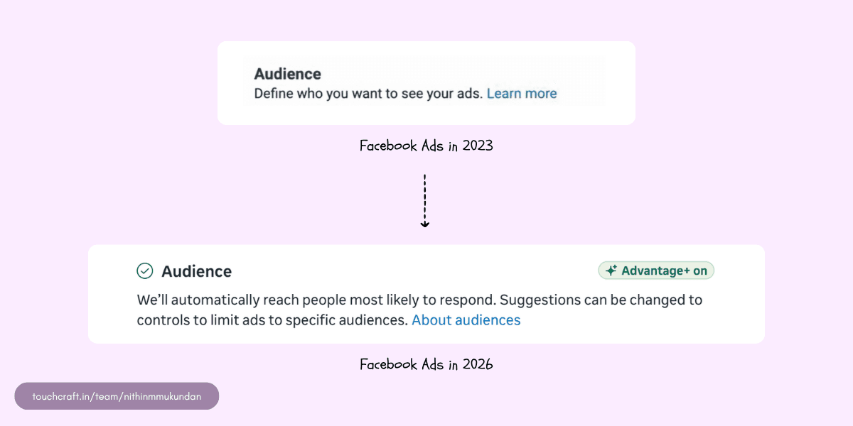 If you look back a few years, platforms like Meta Ads gave marketers a lot of control over targeting. You could select interests, behaviors, and very specific audience segments and manually decide who should see your ads.