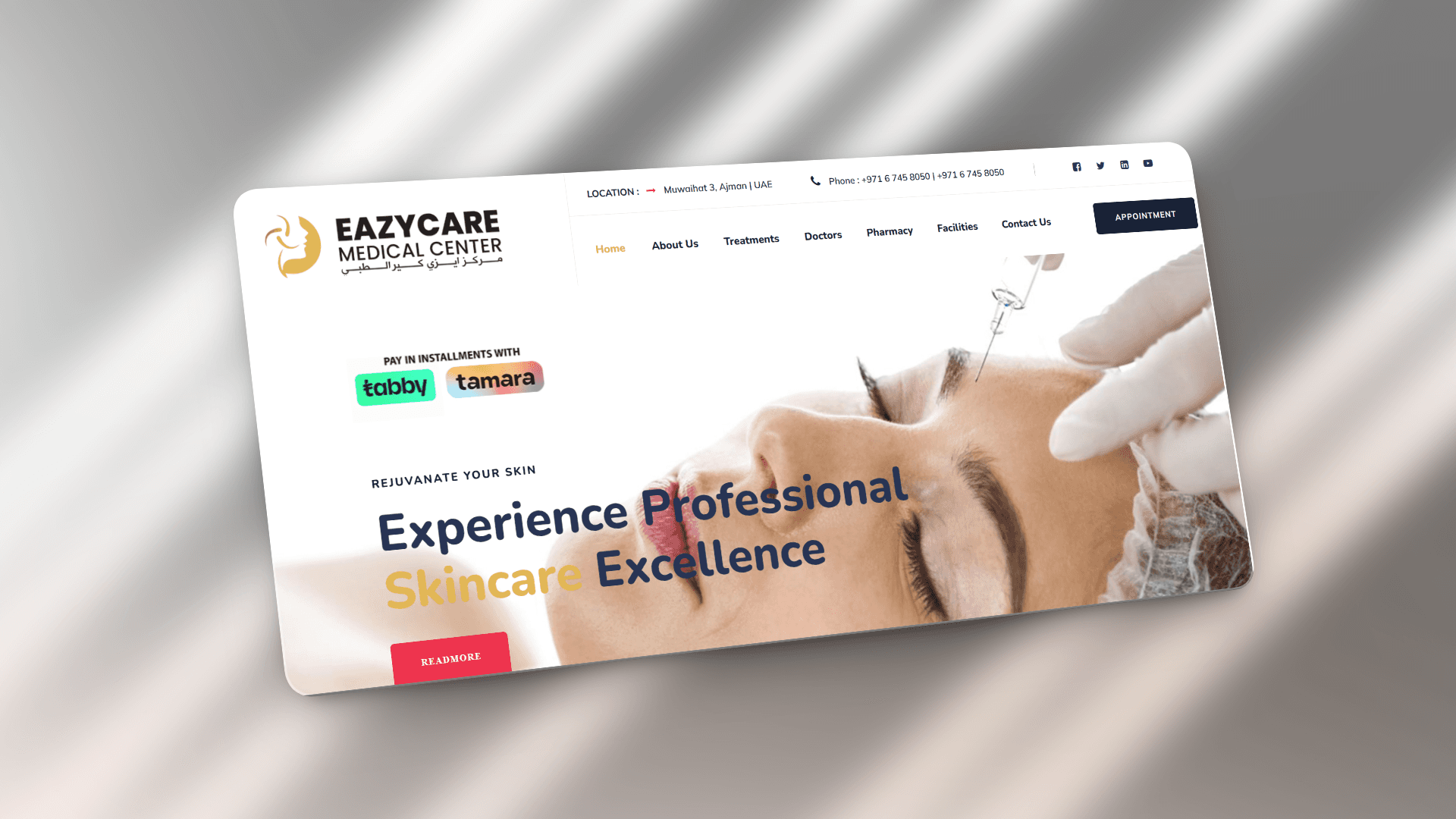Eazycare Medical Center is a multidisciplinary healthcare and medical aesthetics clinic in Ajman, UAE, offering laser, PRP, dental, dermatology, and general medical services. Despite strong infrastructure and qualified doctors, its marketing lacked differentiation and failed to reflect the clinic’s true medical credibility.